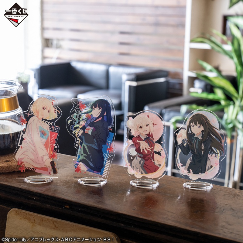 D 獎將上述 4 款插畫重新設計成高約 8~11 公分的壓克力立牌,共有千束A、千束B、瀧奈A、瀧奈B等四款可選擇。