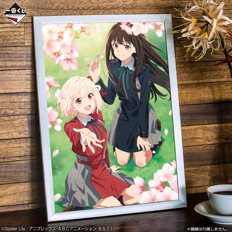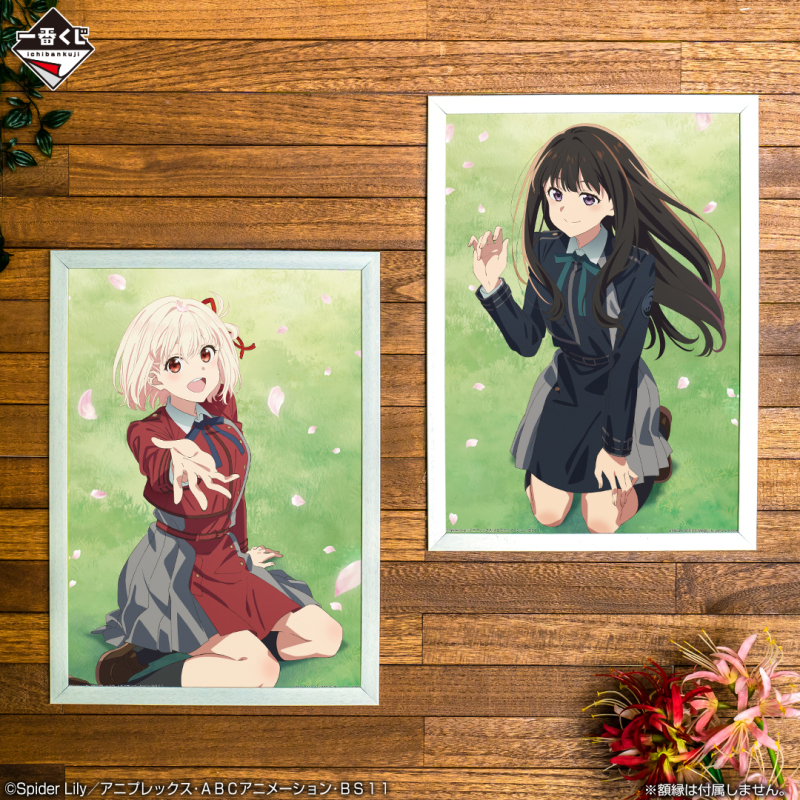 C 獎是使用千束瀧奈沐浴在櫻吹雪中的新規插圖製作成 A3 尺寸的插畫版,共有千束、瀧奈、千束&瀧奈三種版本可選擇。