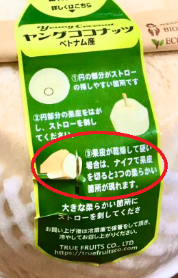 在日本則是有販售一款附上吸管的椰子水,只要按照標籤上的說明把吸管插進椰子,就能享受天然美味的椰子汁。只是,光是「把吸管插進去」的這個動作,就足以讓眾人折騰老半天。