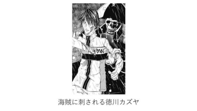 ▼「被海盜刺殺的德川一矢」,海盜的部分是德川的對手平等院鳳凰使出的招式。
