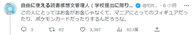▼網友:「對這個人來說錢已經不是錢,變得比較像愛好者的手辦,或是寶可夢卡牌之類的東西了。」