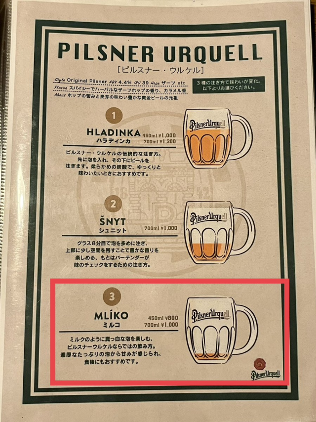 不過推主隨即解釋,這酒款叫做皮爾森·歐克(Pilsner Urquell),在專門的店裡有三種傾倒方式,不同的泡沫比例有著不同的名稱,像這種接近泡沫比例超過九成的叫做「Mlíko」,有如牛奶般滿滿的氣泡喝起來格外爽口,帶有點甘甜口感非常適合餐後飲用。