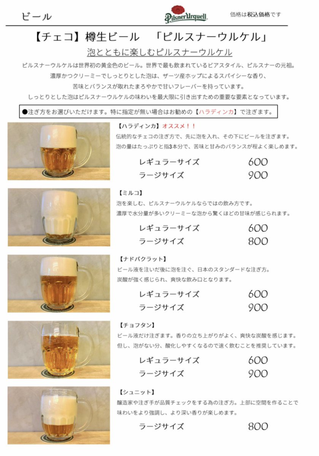 以皮爾森·歐克這款啤酒來說,各種傾倒方式都有其學問在,都必須經過專業的訓練才能無慮的倒出泡沫比例不同的樣式。