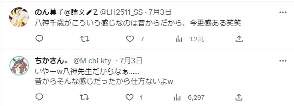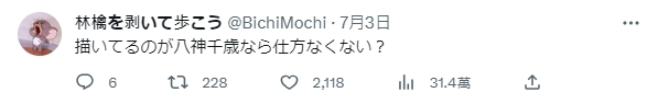 有人表示「這根本就是色情漫畫嘛www」,也有人說「看到作者的瞬間就覺得不意外了」、「沒錯沒錯,因為是八神千歲所以沒辦法嘛ww」等等。
