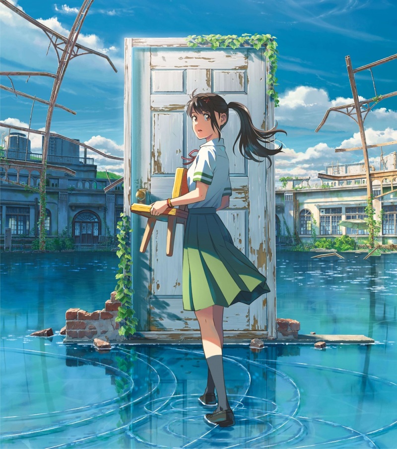 由新海誠編劇兼執導的日本動畫電影《鈴芽之旅》,是繼《你的名字》、《天氣之子》後,第三部牽涉災難題材的電影,合稱為「新海誠災難三部曲」。故事以新冠肺炎造成原本熱鬧的城市變得無人、寂靜的現象為靈感,結合東日本大震災的事件,設計出會冒出巨大蚯蚓、引發大地震的「災難之門」。女主角岩戶鈴芽在一次意外中介入了關門師-宗像草太的任務,兩人奇異又療癒冒險就此展開。