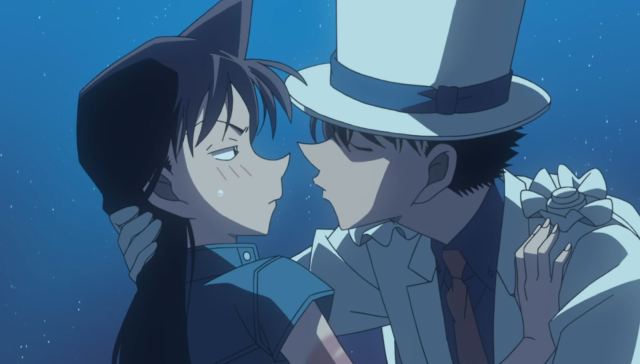 ▼《天空的劫難船》片尾彩蛋,怪盜基德的身份最後還是被小蘭識破了