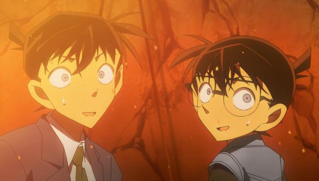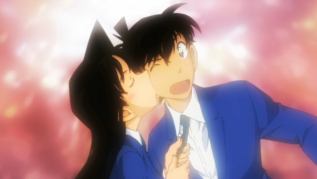 ▼(中排右)動畫第927、928集(海外版982-985)特別篇〈紅之校外旅行〉是帝丹高中前往京都舉辦修學旅行,也是工藤新一和小蘭經過十幾年後終於修成正果(?順利交往的篇章。是本人無誤。(不過途中還是有找服部來撐場)