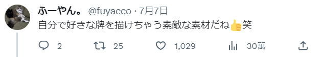 在台灣,沒有任何標示的空白牌通常是附贈在牌組裡用來補牌用的,但日本的空白牌就是指白牌,可以作為任意牌使用。於是有網友回覆,這可是相當實用的牌呢。