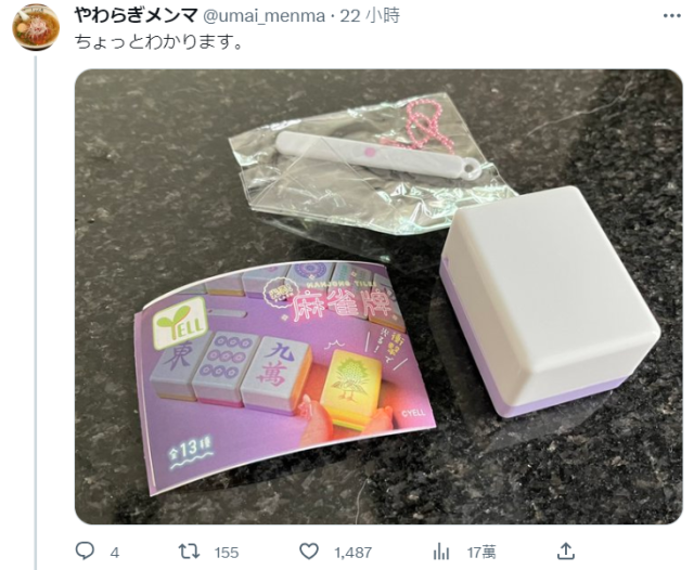 ▼日本有廠商出了一款麻將造型的收納包扭蛋,結果一名推主saki(@amoyagiii)抽到了白牌,沒有圖案根本看不出是麻將了,讓他哭笑不得。