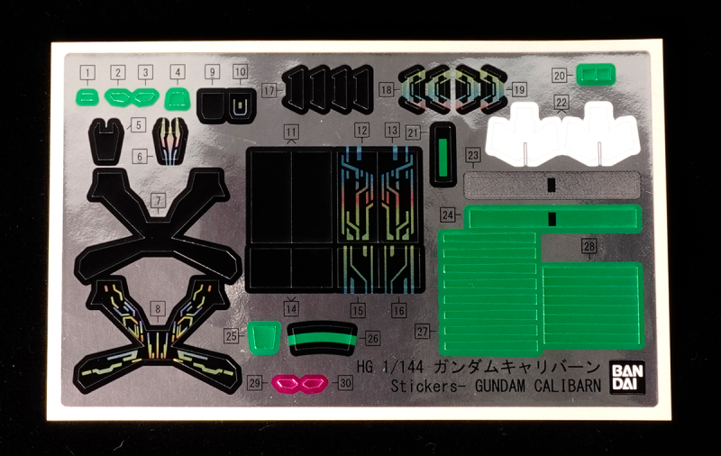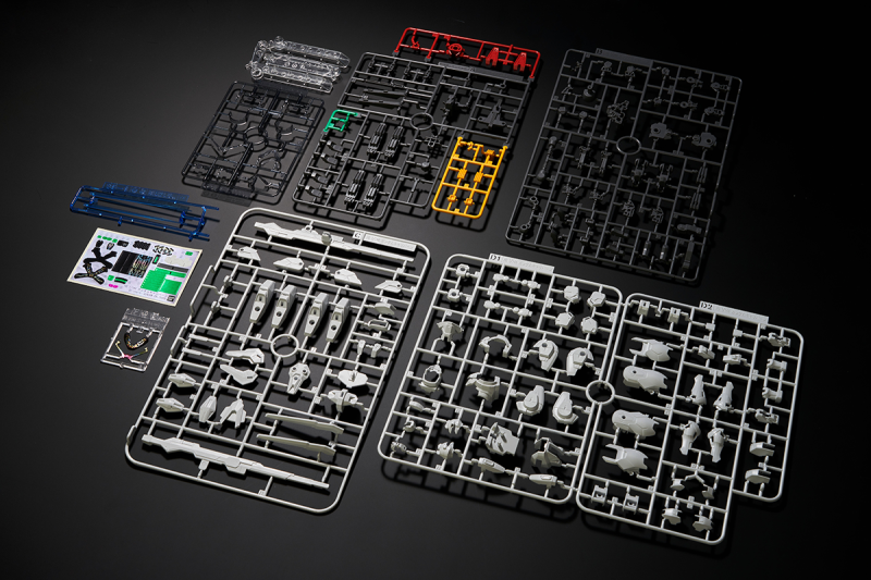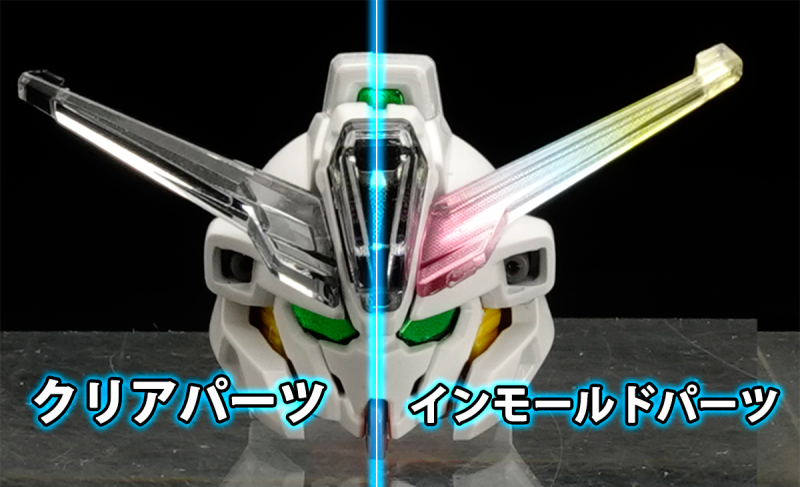 頭部天線、胸口、大腿等處的發光部位採用透明黑外罩零件加上內部貼紙呈現,可自行選擇有、無發光兩種狀態的貼紙製作,劇中沒有解釋的紅眼貼紙這次也再度出現。其中天線、胸口更有以塑膠包覆印刷層的「IMD 模內裝飾成形零件」,能夠呈現比貼紙更加鮮明的漸層虹光。