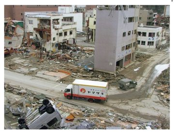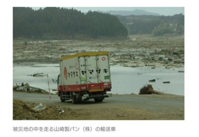 看看這是因為地震所毀損的城鎮,山崎麵包的貨車仍然前往到災區給予災民支持,這些鏡頭也十足提升了品牌在民眾心裡的印象。