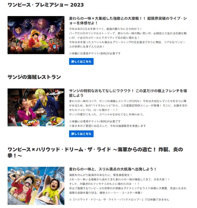 雖然開玩笑這樣講,但推主大推本次環球影城的「ONE PIECE PREMIRE SUMMER」活動,有舞台秀、Coser 互動餐廳、遊樂設施、主題餐點與周邊販售等,非常值得粉絲來 USJ 享受趣味體驗。( 詳細資訊請點此處到 USJ 官網查看 )