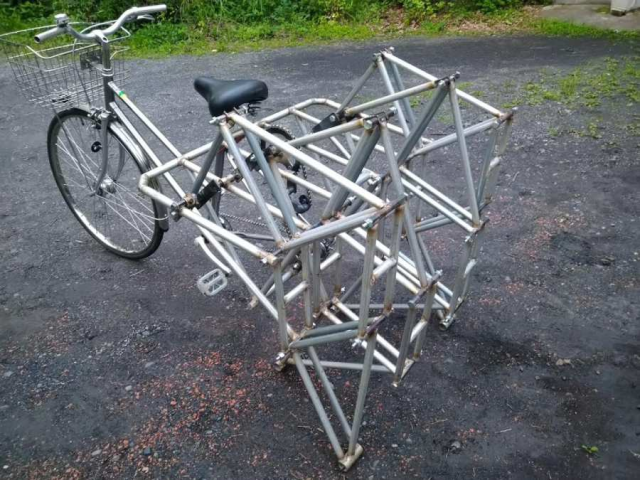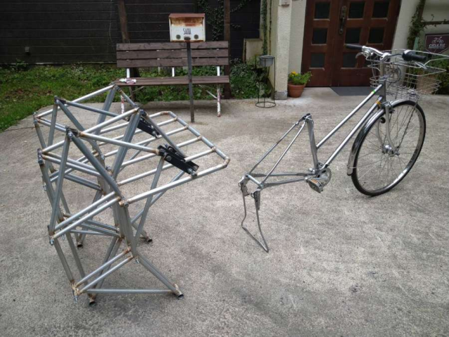 而在日本有位推主garden house sara(@g_h_sara) 受到這個概念的啟發,決定自己試著做做看仿生獸的裝置,運用自行車結合的概念,打造這個「仿生獸自行車」,這個從零開始的成果也博得網友關注。