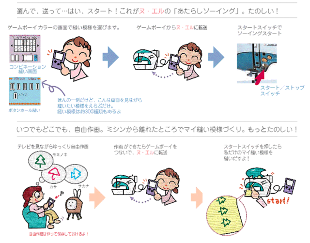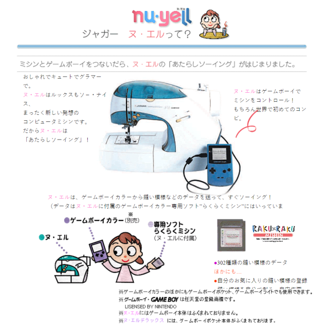 最近日本推特上有推主ふぅ(@fuu_fuu_fuu) 分享了一款 20 多年前的老物,是當時 JAGUAR 與任天堂合作的「nu・yell」設備,透過專屬的遊戲卡帶,就可以與 GAMEBOY 進行連線,讓裁縫機動起來,讓不少網友驚呼原來當年有這種有趣的東西。