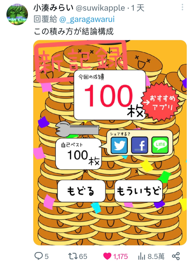 ▼推主:「疊鬆餅的遊戲,失誤的瞬間就火力全開笑死」