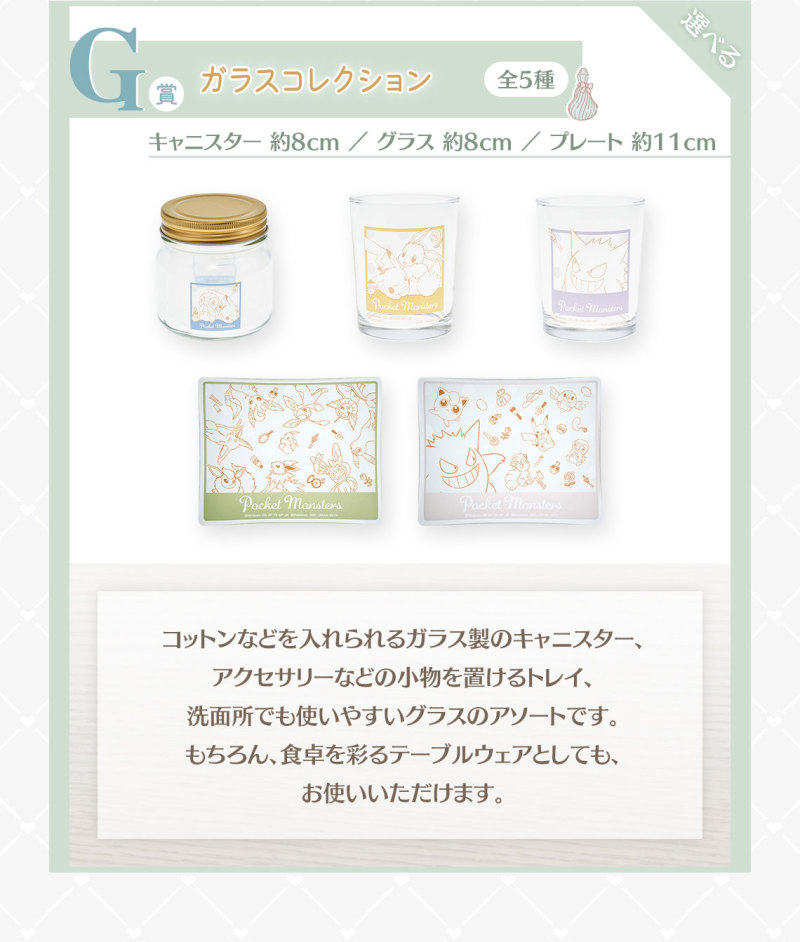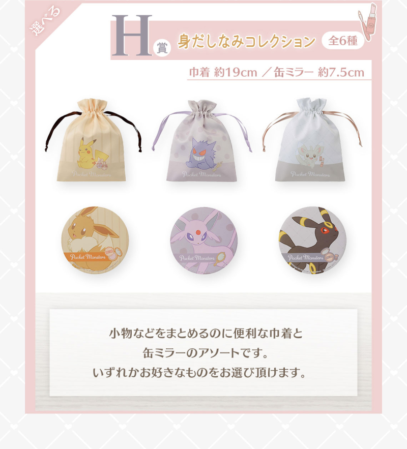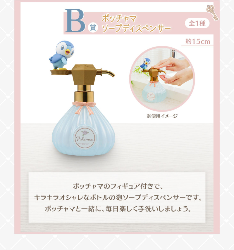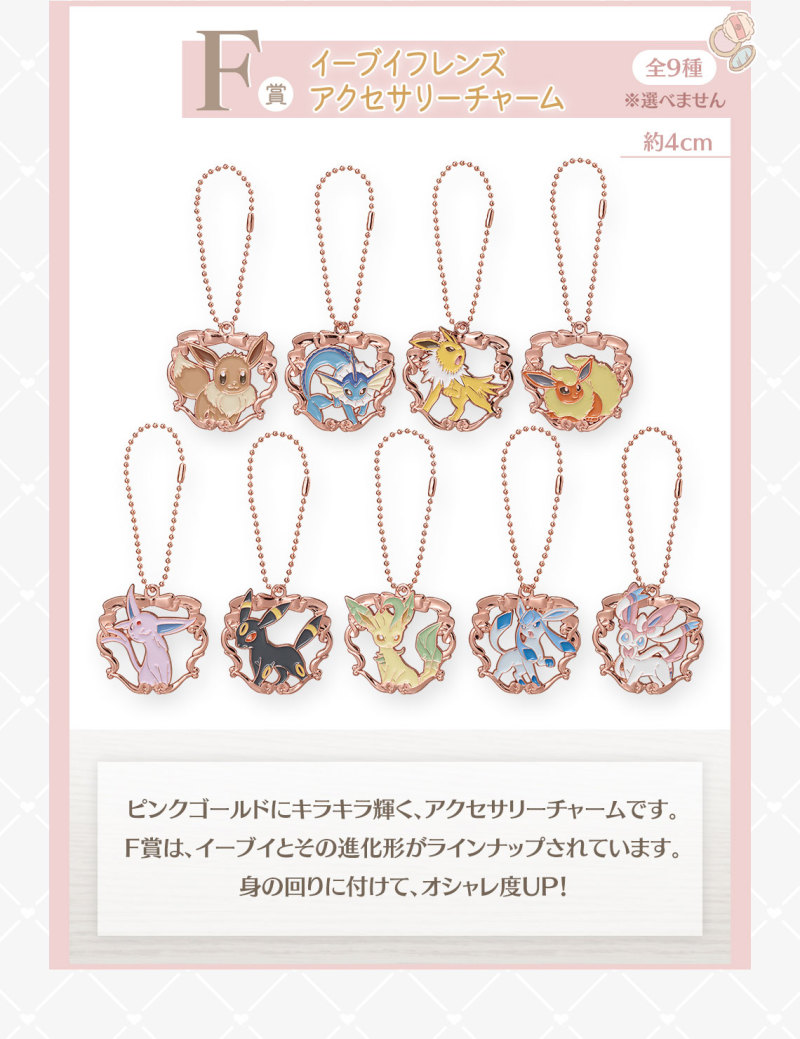 「一番賞 寶可夢Pokemon ~Fantasy Closet~ 」,以粉嫩繽紛的可愛風格,推出 A ~ H 賞 + Last One賞、雙重中獎機會等不同級別的豐富獎品~收錄有綁著夢幻絲帶的 27 公分 A賞「皮卡丘布偶」,超可愛的 B賞「波加曼皂液器」、可以裝濕紙巾的 C賞「伊布袋中袋」、能夠裝飾衣架的 D賞「布偶吊飾」,以及閃亮亮的 E賞「金屬吊飾」、F賞「伊布家族吊飾」、G賞「玻璃收藏系列」、H賞「抽繩袋&徽章鏡」,以及Last One獎/雙重中獎機會的「耿鬼布偶」,讓柔和淺色調的寶可夢圍繞你的生活~
