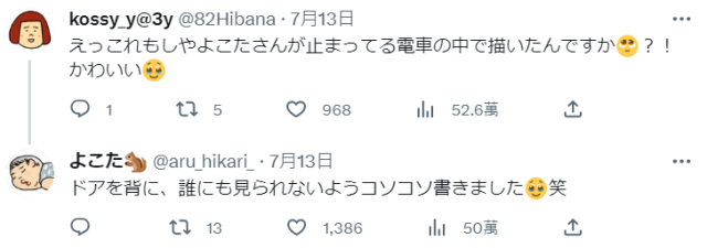 推主:「背對著門,不讓任何人看見偷偷畫的。笑」