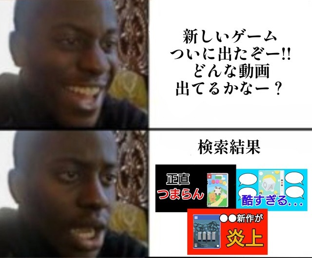 然而下格的搜尋結果卻是:「老實說很無聊」、「太難玩了......」、「某某新作炎上!」