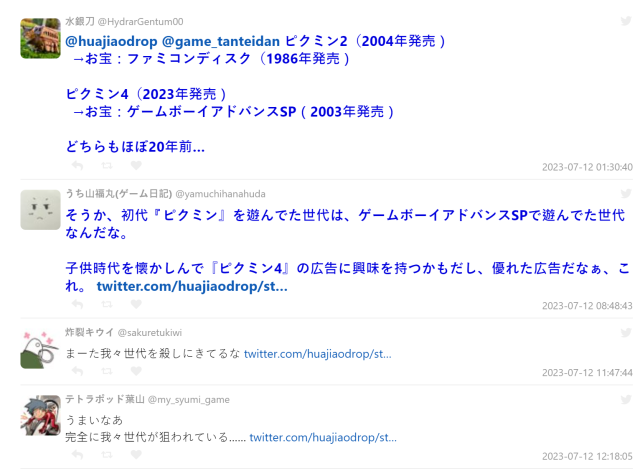 至於為何有這樣的操作,有網友作出解釋 : 當年《皮克敏2》發行時就曾搭配「紅白機」一起宣傳,而今年推出的《皮克敏4》剛好逢 GBA SP 問世 20 周年,所以就在宣傳上特別擺上。