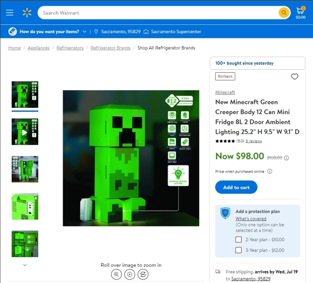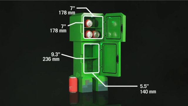 商品是以知名沙盒電玩《Minecraft》的種族角色「苦力怕」為外觀,所設計出的造型小冰箱。根據電商沃爾瑪(Walmart)平台的敘述,這台容量為8公升的家電,能夠放上共達12罐的易開罐飲料...或是你比較喜歡喝啤酒的話,確實也可以放進去。