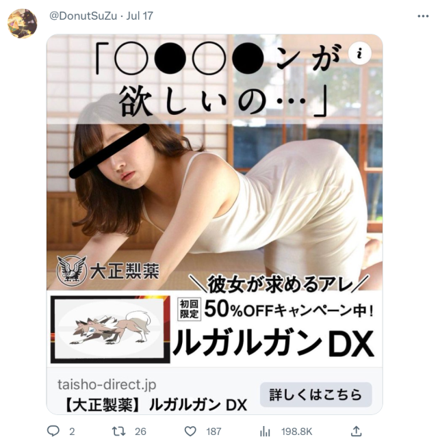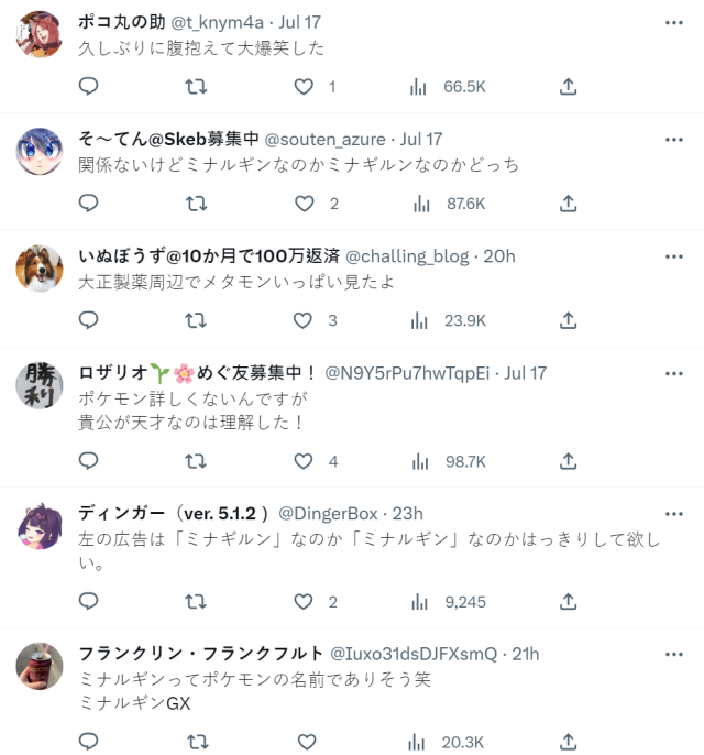 而最近有推主貼出了藥品廠牌-大正製藥的廣告-就直接寫出 「○ ● ○ ● ンが欲しいの... 」,這色氣意味十足的台詞原先是想宣傳男性營養品ミナルギンDX,卻被推主妙手回應新的答案,博得網友讚賞,來看看他到底寫了什麼。