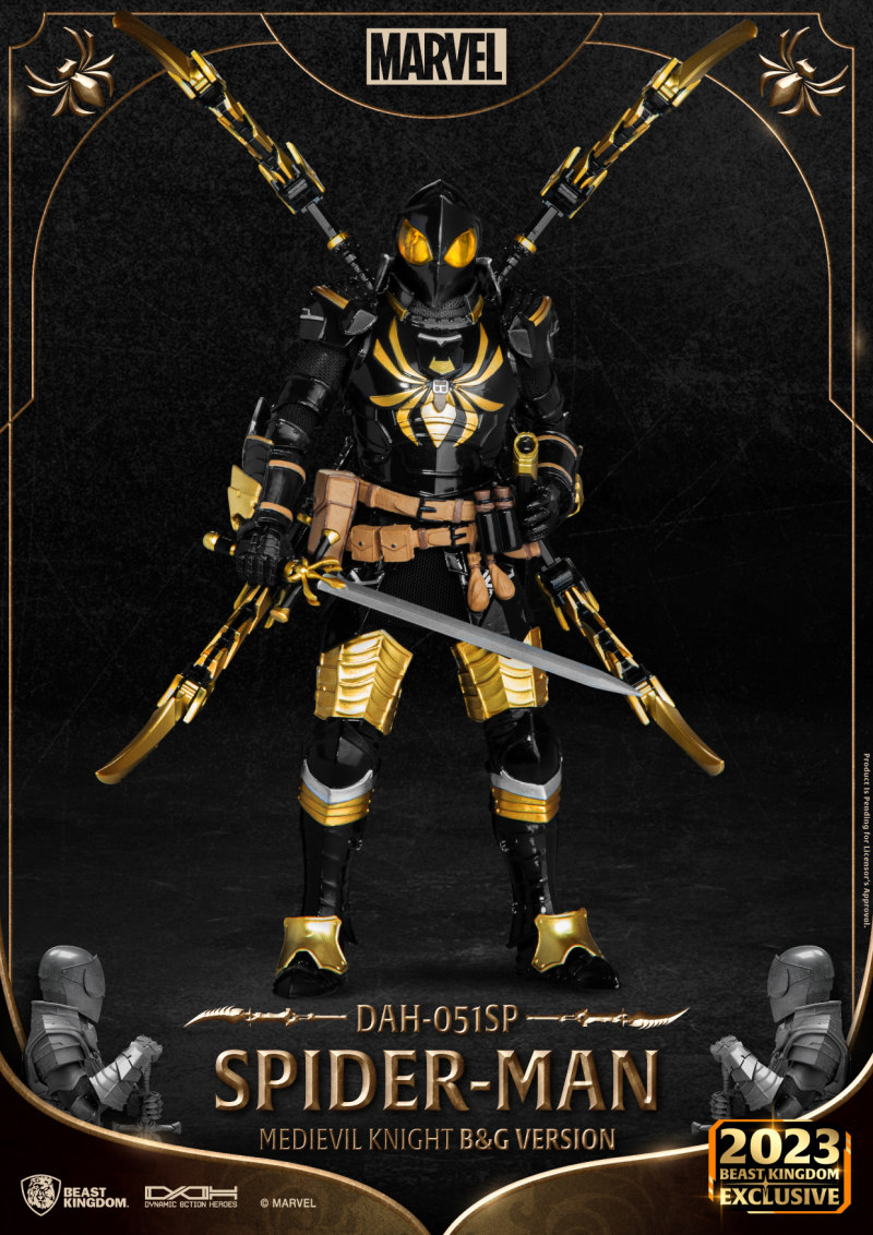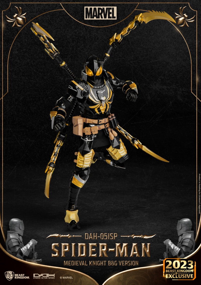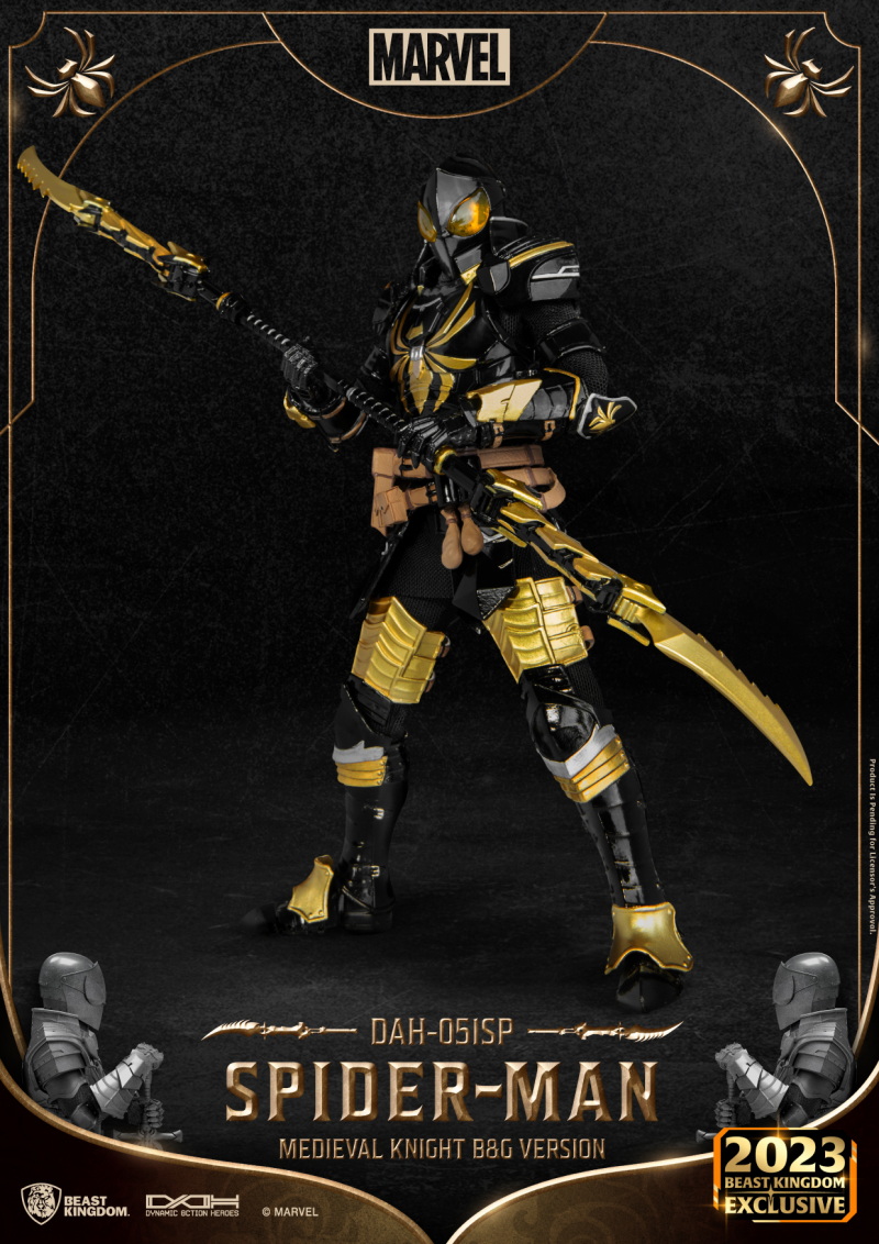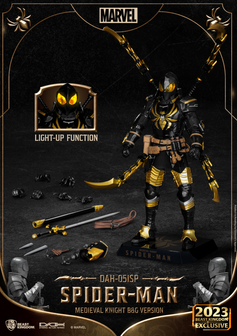 台灣玩具品牌野獸國(Beast Kingdom)旗下熱門的「究極英雄 (Dynamic 8action Heroes,DAH) 」商品系列在推出「鋼鐵人」、「蜘蛛人」之後,日前再度發表新色的「中世紀騎士 蜘蛛人 B&G 限定版」1/9 比例可動人偶!
