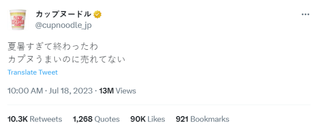 ▼ 在昨日 ( 7/18 ) 抱怨太熱賣不好的日清官方推特