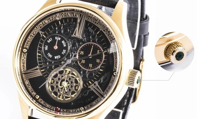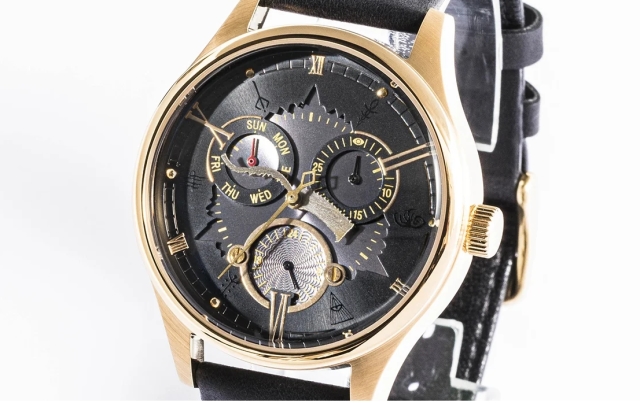 黑色錶盤上佈滿了呈現古老城市「雅南」氛圍的金色細節。手錶面板上則有模仿獵人服裝裾邊的鋸齒狀設計,並且以卡爾符文和羅馬數字交錯呈現數字,引領獵人們回到《血源詛咒》的世界。另外,時分針採用了模仿「鋸齒鉈」的原創設計,並且裝有日曆、24小時計、星期顯示的功能。