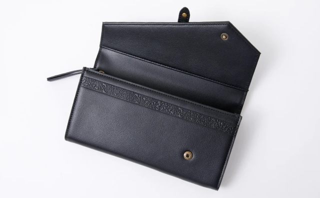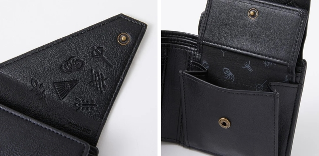 以黑色為主色調,並加入了模仿獵人裝束的鉚釘作為點綴。錢包的內部也有著卡爾符文的設計,並且使用了與背包相同的原創布料。