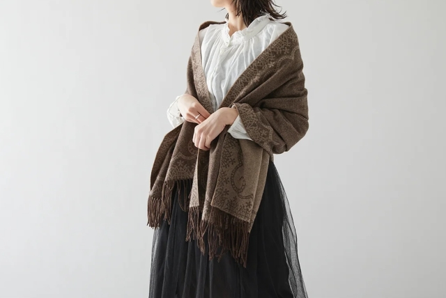 重現人偶的披肩,使用好摸的柔軟素材製作。尺寸有68×159cm之大,披在肩上就彷彿化身為人偶一樣。拿著這個,應該就可以做個好夢吧。