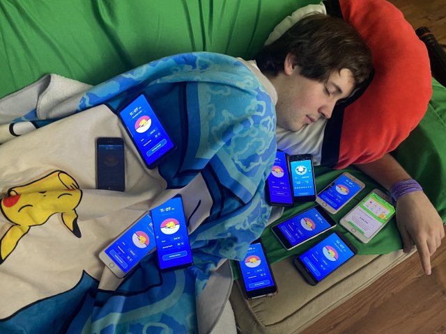 雖然不曉得最後到底是哪一台手機成功,但顯然犧牲床上的空間與健康(手機有輻射)果然是值得的(?),根據玩家Professor Rex後來的分享,他最後也真的是成功捕捉到了色違小拳石的睡姿,並且一起睡覺吃飯。