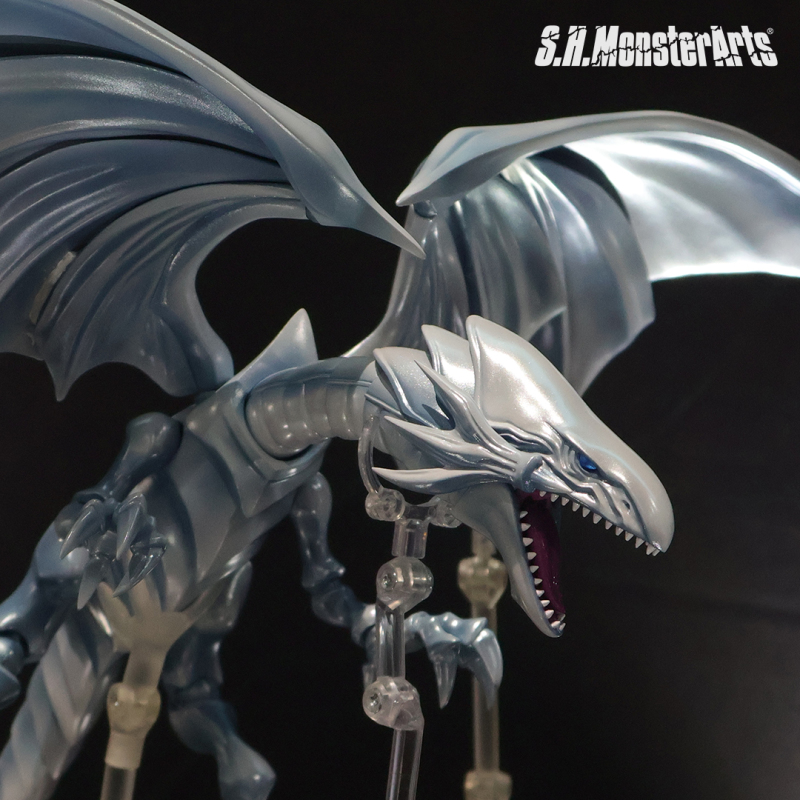 ▼ 首先是讓各位決鬥者大興奮的 S.H.MonsterArts 系列「青眼白龍 (Blue-Eyes White Dragon) 」!展開的雙翼極具存在感,帶有珠光光澤感的銀白色軀體也相當漂亮。