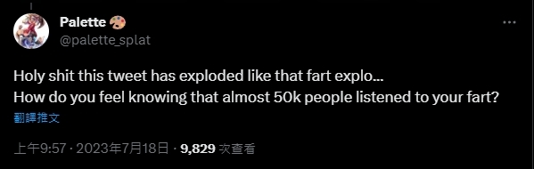 也因為這則「屁響」,在推主DarkMesh分享貼文後不久,再加上《Pokémon Sleep》的熱潮下,這篇推文短短時間內就迅速得到大批網友的關注,甚至有人還因此吐槽表示「5萬人看你在這邊放屁,你的感想是什麼?」