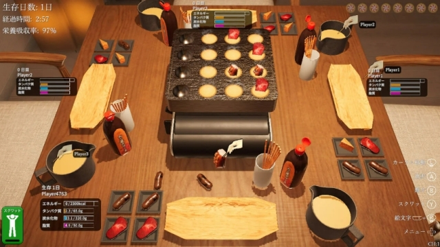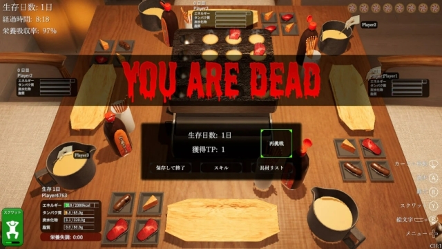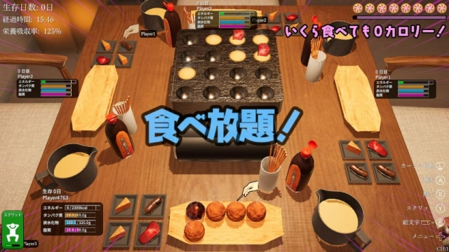 遊戲主要以線上對戰的方式進行,雖然說姑且還算是大家要一起努力活下來的合作遊戲,但是不小心拿走別人緊急時刻要吃的章魚燒導致對方死亡,這畢竟也是常有的事(點頭)。