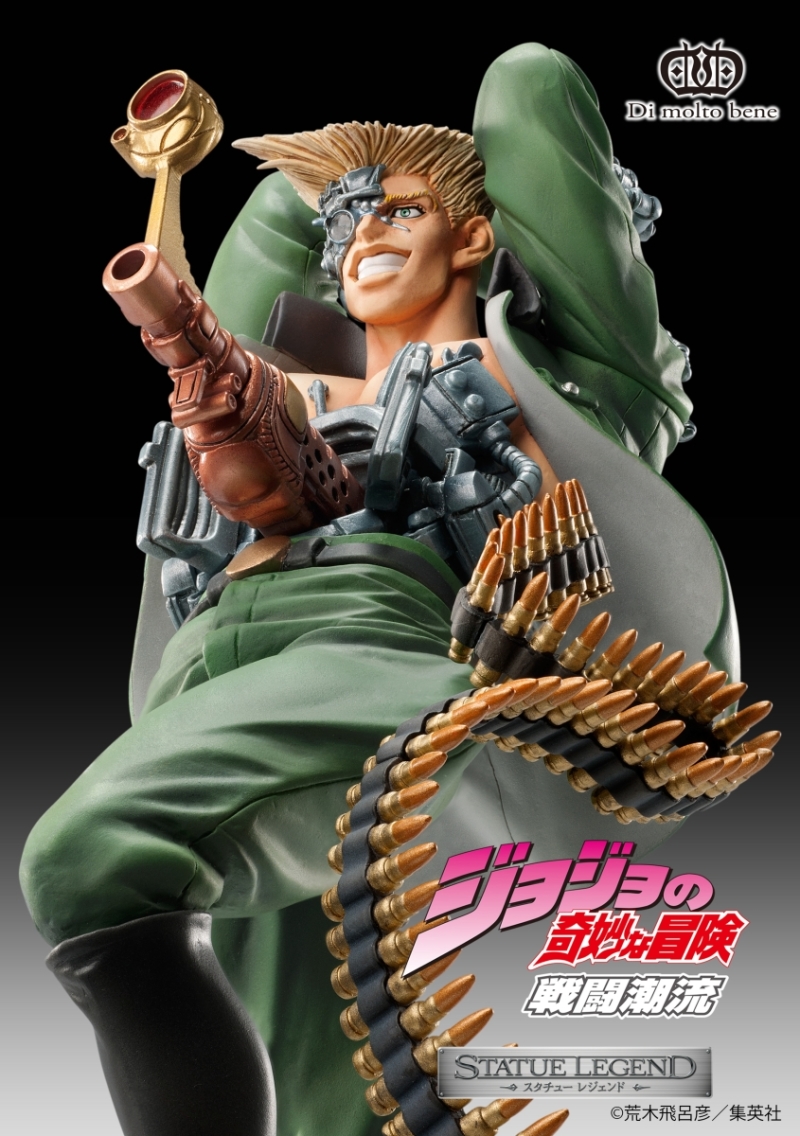 「雕像傳說 魯多爾·馮·修特羅哈姆」以全新包裝再販推出!尺寸約為高 180 mm,還原日耳曼民族的最高智慧結晶-機械生化人型態!除了刻劃出肚子伸出的重機關砲緻密造形與滿滿的子彈等武裝,更生動呈現雙手高舉放在身後、腿部交叉並挺出下身的動作,帶來有點嫵媚感的經典JOJO立姿勢!是一款躍動、獵奇又精采的跨時代之作。