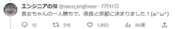 ▼推主:「長女一人獨得,決定去京都和奈良了!(๑^ω^)」