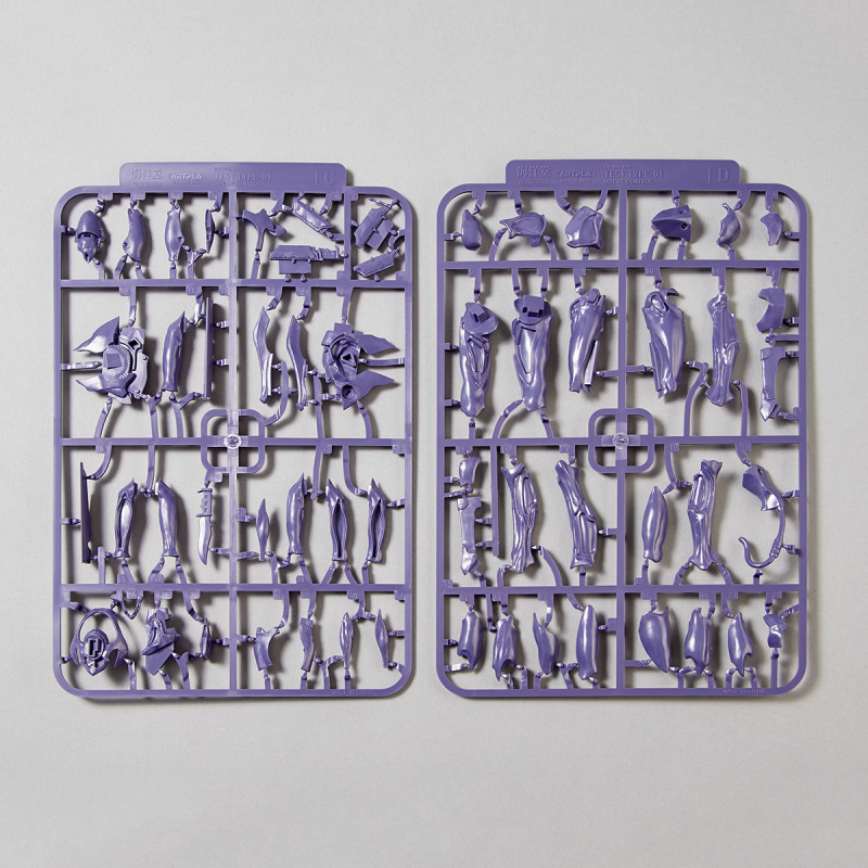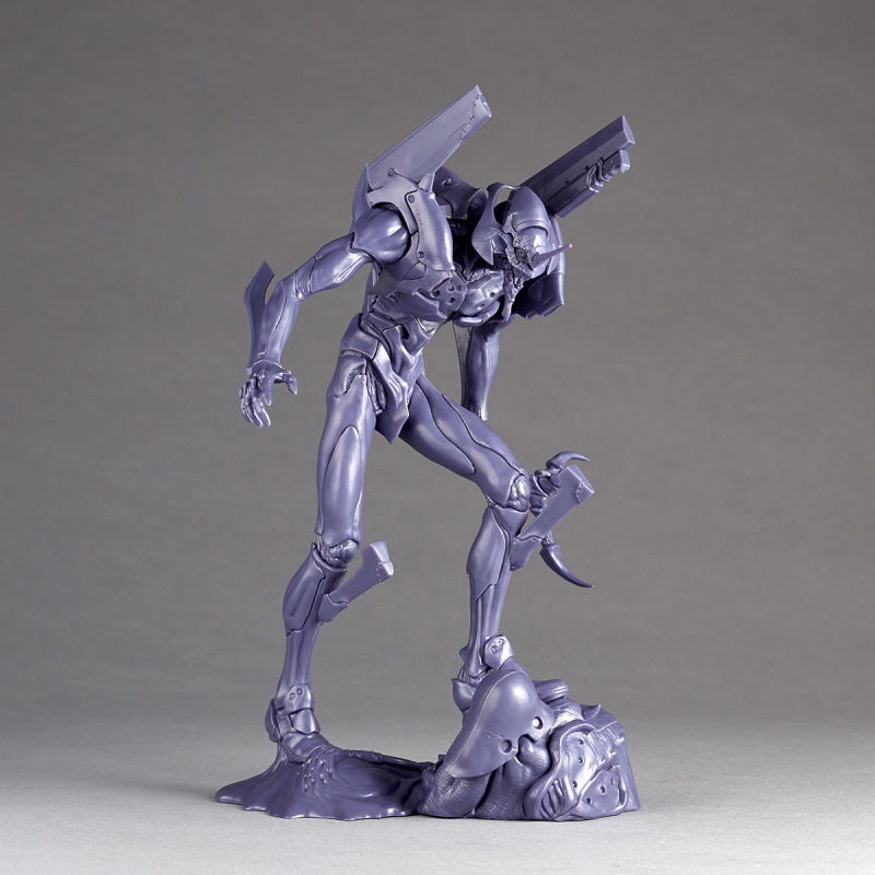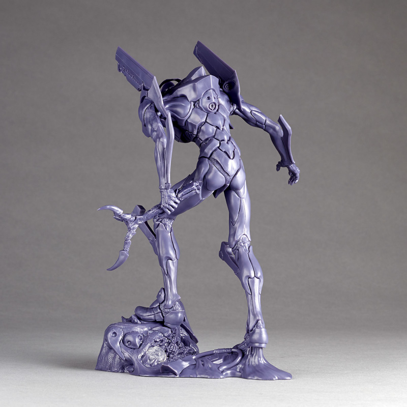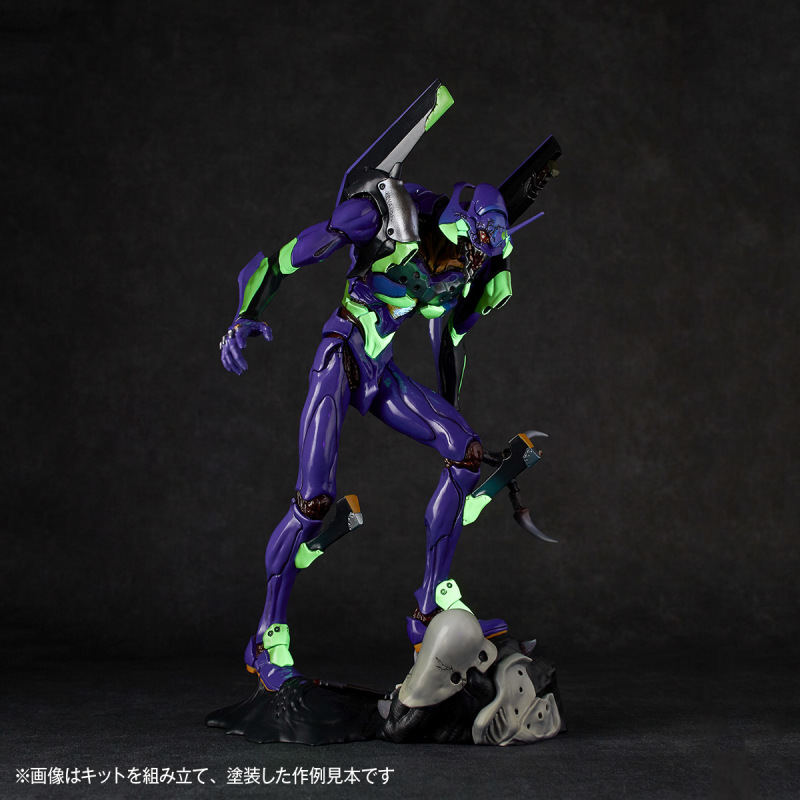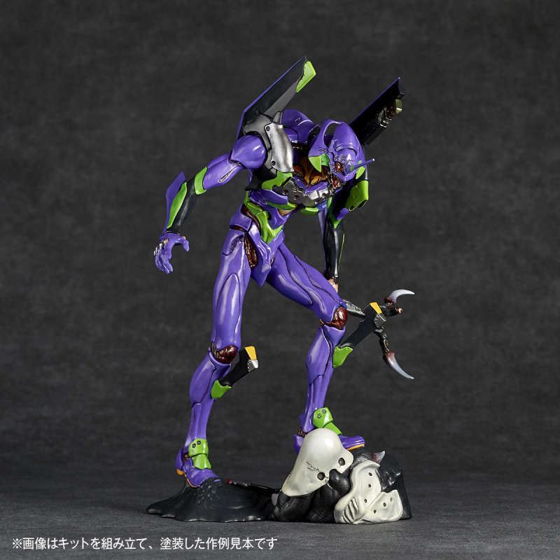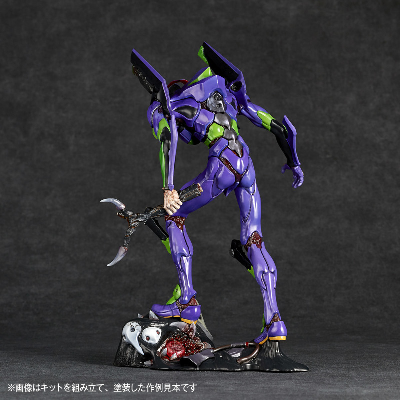 本次以比起 GK 製作相較起來較為簡單、價格也相對便宜的組裝模型形式,再度推出這款經典造型!運用 3D 列印技術高度還原原型細節,讓暴走撕扯第四使徒的初號機再次立於大地。組裝後尺寸全高約 23 公分,細節更動也都由松村老師親自加工,並追加有高震動粒子刀替換手、完整手臂,以及能卸下胸前拘束器的替換零件,展現初號機暴走的瘋狂造型!
