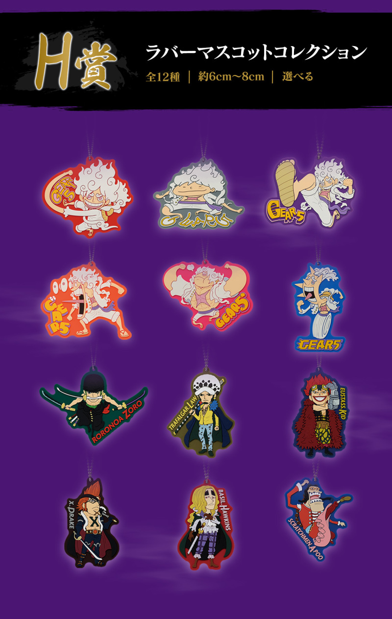 以極具躍動感的造型詮釋《航海王》角色的「一番賞 航海王 BEYOND THE LEVEL」,共有 A 賞~H 賞 +最後賞的豐富獎項,最大的賣點是首次在一番賞系列登場的A 賞「魯夫 五檔」型態角色模型!以及 B 賞的「羅」與 C 賞的「基德」,最後賞則是「魯夫 5檔 最後賞Ver.」角色模型。另外還有鬼島的碗、五檔魯夫的壓克力燈、毛巾和貼紙等精彩的獎品!