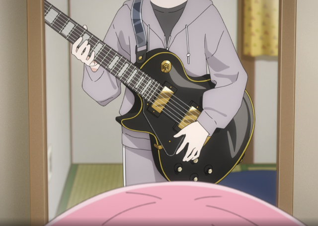 在動畫第一集中,看了電視中陰沉的吉他手也能大受歡迎的小孤獨,因而向爸爸借了她人生第一把吉他「Gibson Les Paul Custom」,而這把吉他自然也成為了粉絲想練吉他的首選。