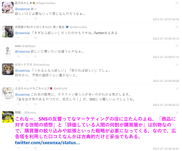 不過不少網友解釋,這種 SNS 上的「想要」跟真正的「需要」是兩碼事,雖說現在社群操作是店家的基本,雖然有話題但本來就不一定能轉換成購買動機,像推主這種可愛視覺的商品,雖然會勾到網友眼球,但不一定真的會下單。