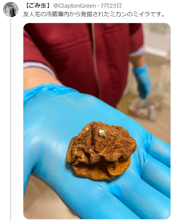 ▼「朋友家冰箱發現的橘子木乃伊。」???已經不知道該說是完整還是面目全非了,好像珊瑚(?
