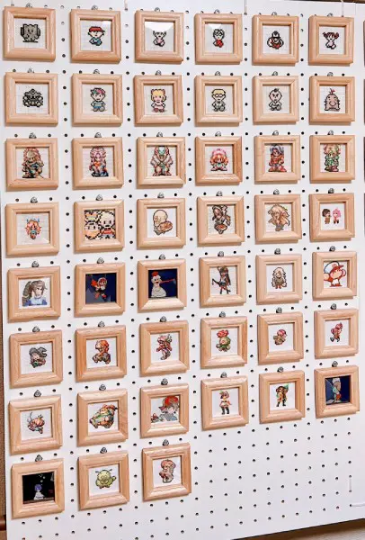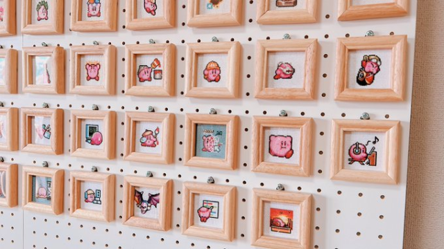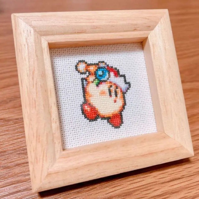 除了卡比之外,《聖劍傳說》與《MOTHER2》這種懷舊的點陣圖風格製作也是他喜愛的,他也表示製作的刺繡作品並不大,透過裱框的方式能讓其看起來更有風格,推薦喜歡刺繡的朋友嘗試。
