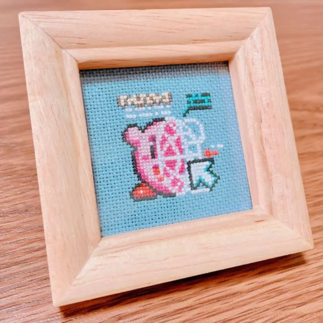 「十字繡」熟稔刺繡工藝的網友應該不陌生,因其編出的圖樣用許多的「X」編結組成而得名。十字繡常常被繡於有均勻方格的織布上。刺繡者需要在每個方向編結,以便能繡出個圖案。算是有歷史的技術,世界各地都有傳統的相關藝術創作。きらとま當初是看到不少人在推特上分享刺繡創作,決定用自己最愛的卡比來玩出新滋味。