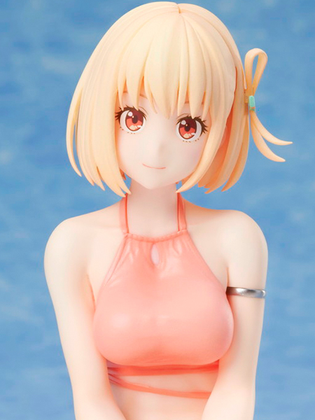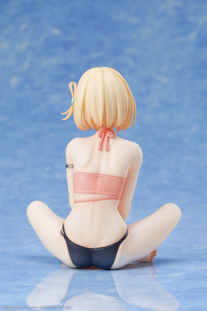 ANIPLEX+「錦木千束」無比例模型,有別於一般常見的制服,以千束穿著泳衣的造型登場!再現了千束豐滿的身材,背部的腰窩和腹肌迷人線條也沒有少!臉上掛著淡淡微笑的可愛表情,白皙的肌膚讓人目不轉睛~採用輕鬆的盤腿坐姿,尺寸約高 16 公分,並附有椅子,可以裝飾在椅子或是房間各處~與另售的井之上瀧奈一起收藏吧!