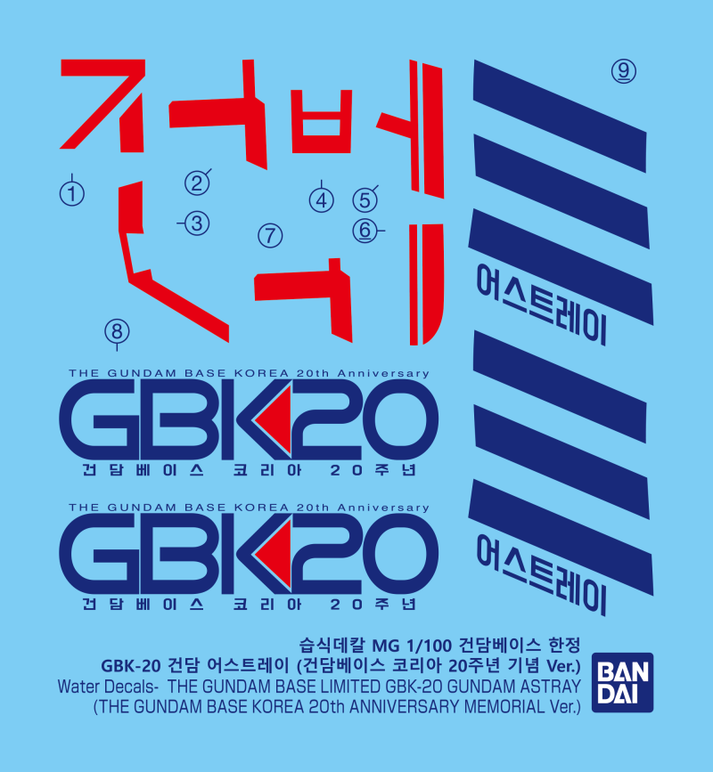 由萬代官方營運的韓國《機動戰士鋼彈》鋼普拉旗艦店 THE GUNDAM BASE KOREA 為紀念開業 20 周年,今日發表了紀念商品「MG 1/100 GBK-20 異端鋼彈[The Gundam Base Korea 20th Anniversary Memorial Edition]」將在 2023 年 08 月 24 日起於『韓國萬代南夢宮 FUN EXPO』等活動限定販售的消息。