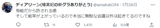 ▼「因為很能幹所以被原諒的感覺。然後因為效率提高了,所以除了沒用的會議以外真的有激起一些什麼吧。」