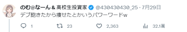 ▼「胖子當膩了所以瘦下來,好衝擊的句子w」