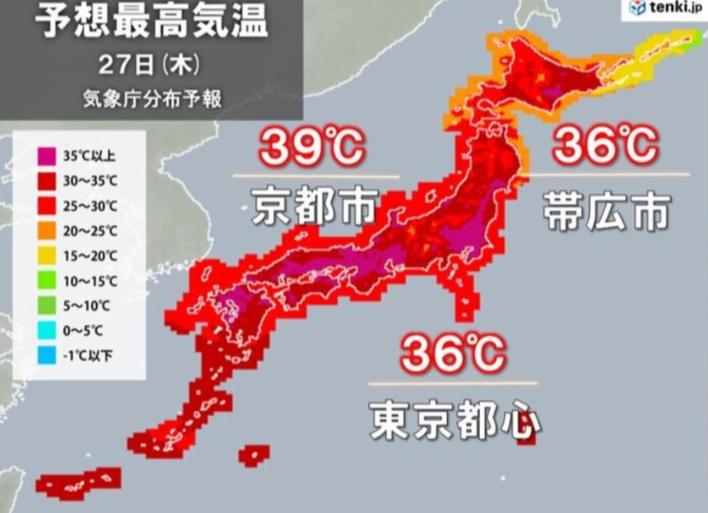 或許各位會覺得,那我去日本的北境像是北海道是不是就涼許多了?當作避暑的好地方,但實際上錯了,現在日本幾乎全國都是炎熱天氣,就算到緯度較高的地方也難逃高溫魔爪。