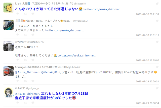 不過這樣的高溫的確真的罕見,不少日本朋友都表示沒看過這麼熱的北海道,甚至比起東京或是較南方的地區都還要高溫,真的讓人感到難以置信。但也有網友指出,北海道這帶雖然白天很熱,但晚間涼爽許多,還是比南部城市好上不少。
