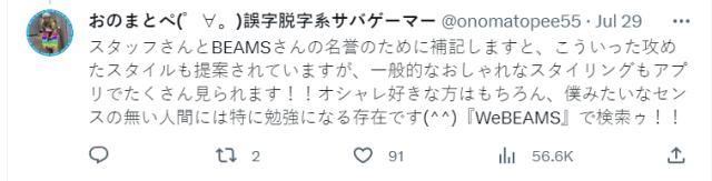 推主也表示其實並非要貶低 BEAMS 的穿搭選擇,只是自己不太理解,各種穿搭都有喜歡的朋友,希望大家不要對 BEAMS 感受不佳,網站還是有很多值得參考的選擇。